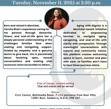 The Indo-Canadian Seniors Foundation of Quebec enhances the well-being of Indo- Canadian Seniors of Montreal through community engagement, social connection, and promoting active lifestyles.